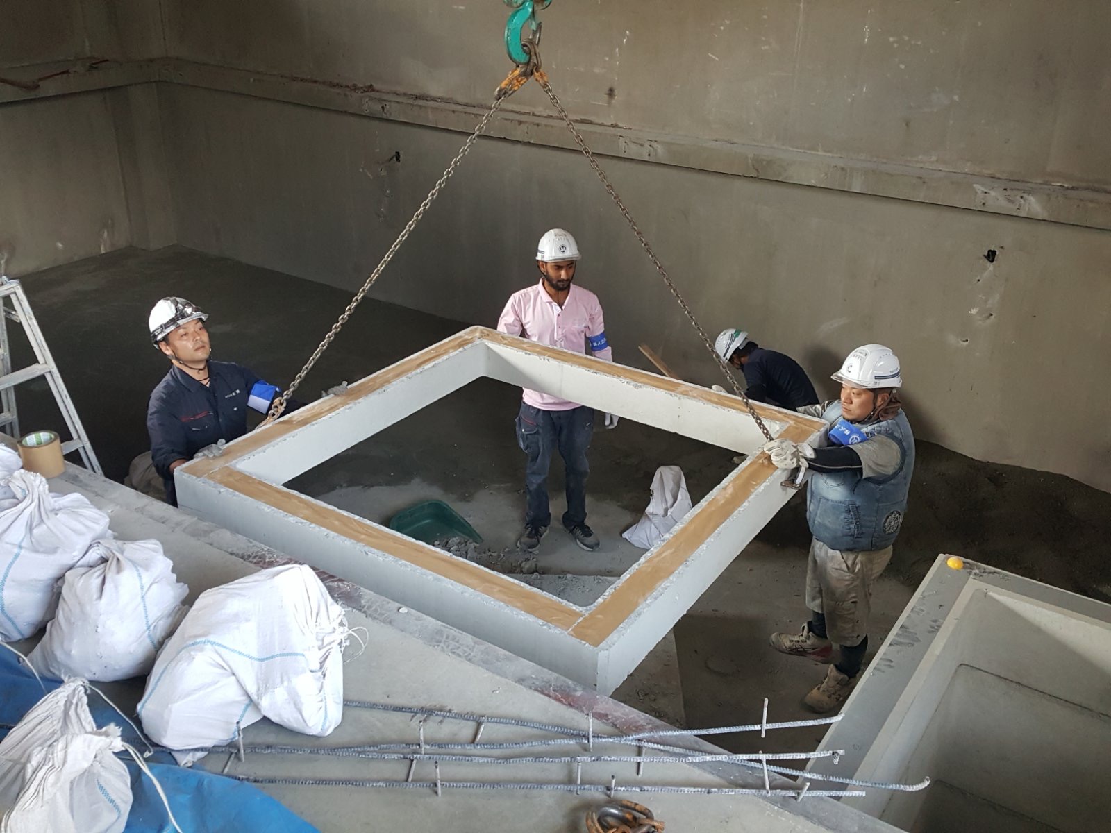ピット内にある排水ポンプは残置が必要であったため、ハンドホール桝を排水ポンプ周囲へ設置し