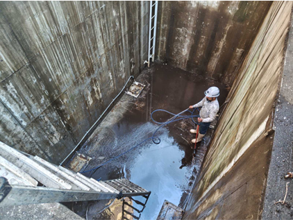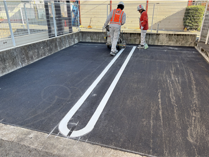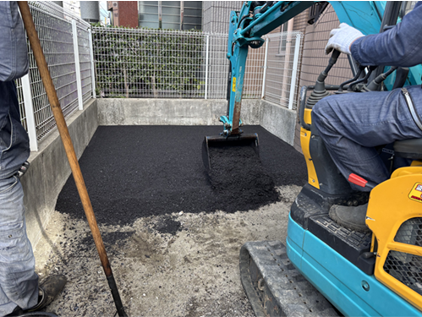 内部駐車場横には駐輪場があり、居住者様の動線を確保するだけでなく周囲の安全には十分注意をして作業を進めてまいりました。