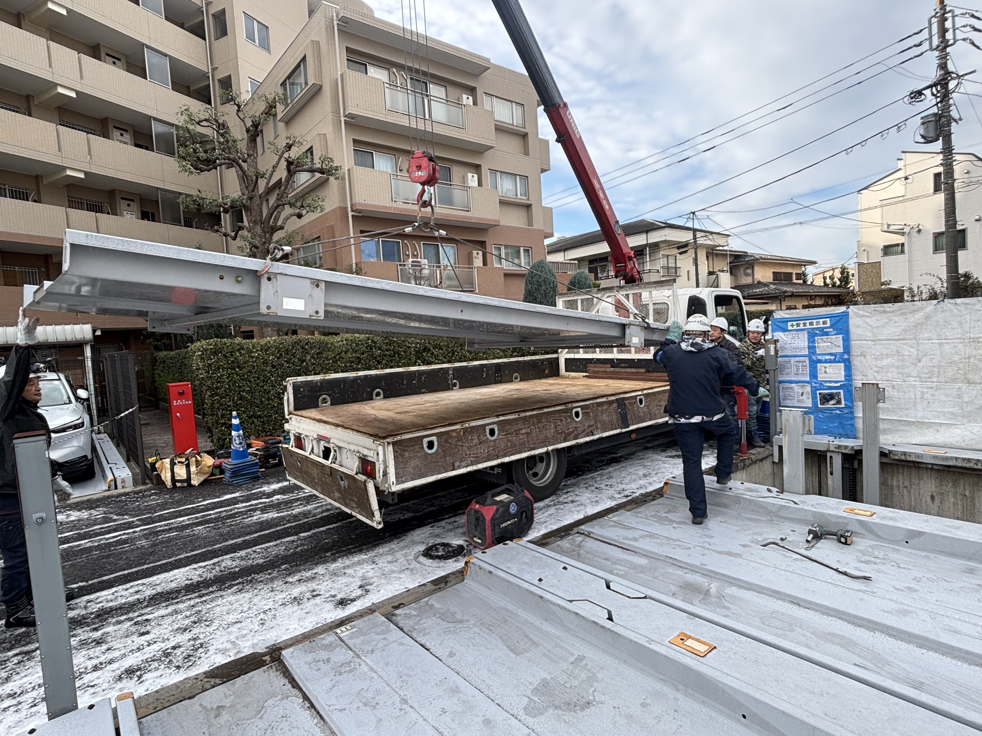 既存平面駐車場ともかなり近いため、車カバーの設置や誘導員・作業員を通常以上に配置する等を徹底し、慎重に作業を進めてまいりました。